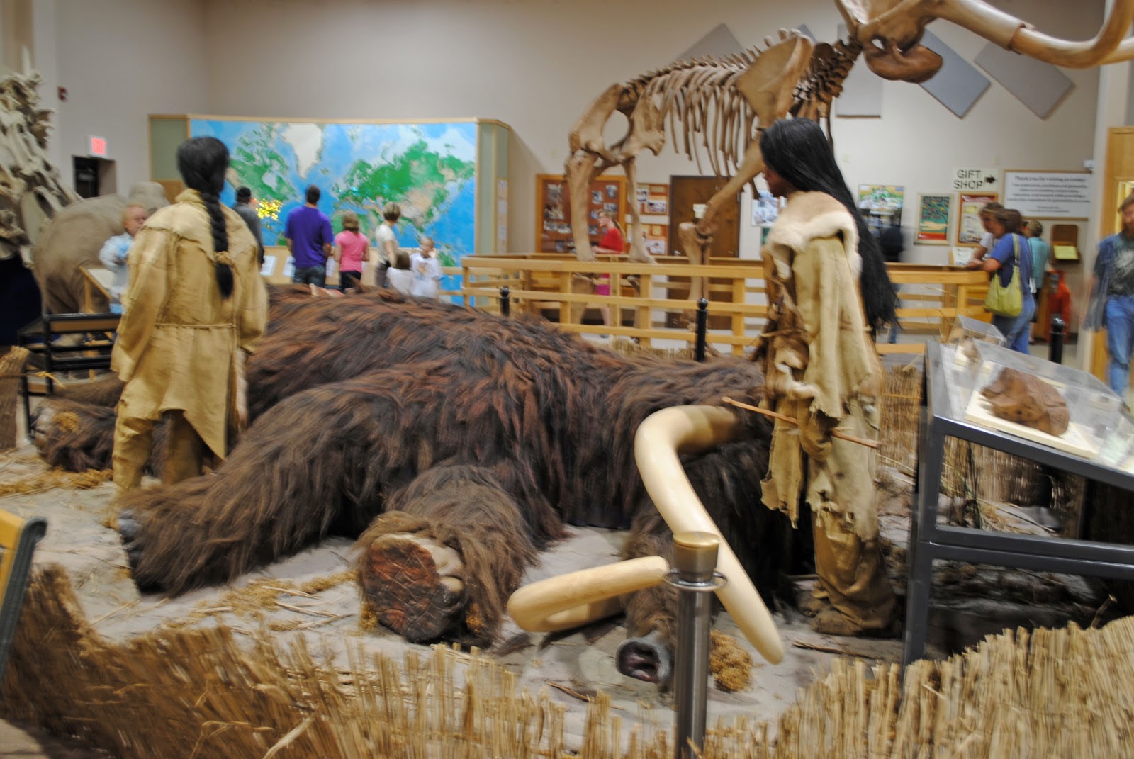 As you tour the site you will see bones still in the same place that they were found. The site was a huge sink hole that filled with water. Mammoths and other animals came to the sink hole to drink, fell in and could not get out again. Eventually the sink hole filled in again and the animals were buried and became fossilized. The site was discovered when the “hill” was being bulldozed for a building project and the operator spotted bones being uncovered. He stopped and called in the scientists and the rest as they say is history, the Mammoth Site was born.